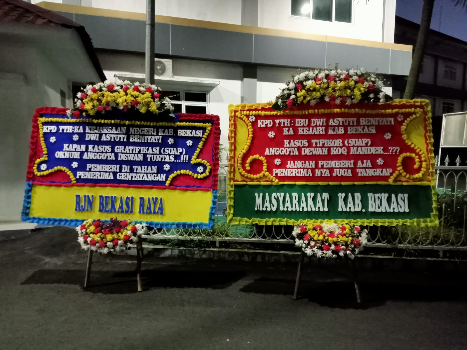 Kabupaten Bekasi,dailyindonesia.co – Salah seorang warga masyarakat Kabupaten Bekasi telah mengirimkan bunga sebagai simbol dugaan lemahnya penanganan proses hukum atas kasus dugaan gratifikasi salah satu pimpinan DPRD Kabupaten Bekasi yang sedang ditangani oleh Kejaksaan Negeri Kabupaten Bekasi.