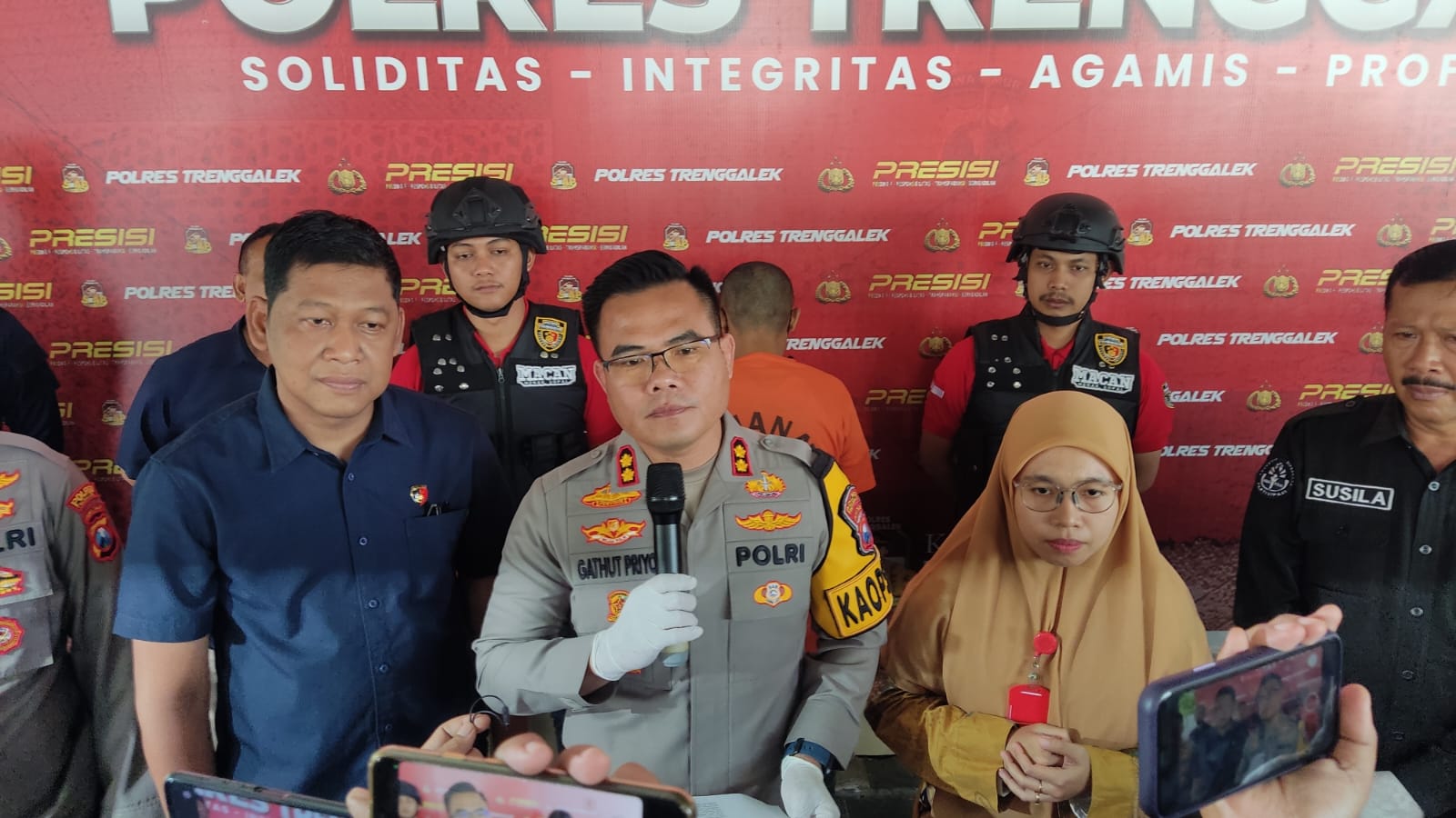 “Kasus ini terungkap berawal dari kecurigaan keluarga korban terhadap cerita yang disampaikan oleh korban. Orang tua kemudian berkomunikasi dengan Dinas Sosial dan disarankan untuk melaporkan ke Polres Trenggalek,” jelas AKBP Gathut Bowo Supriyono.