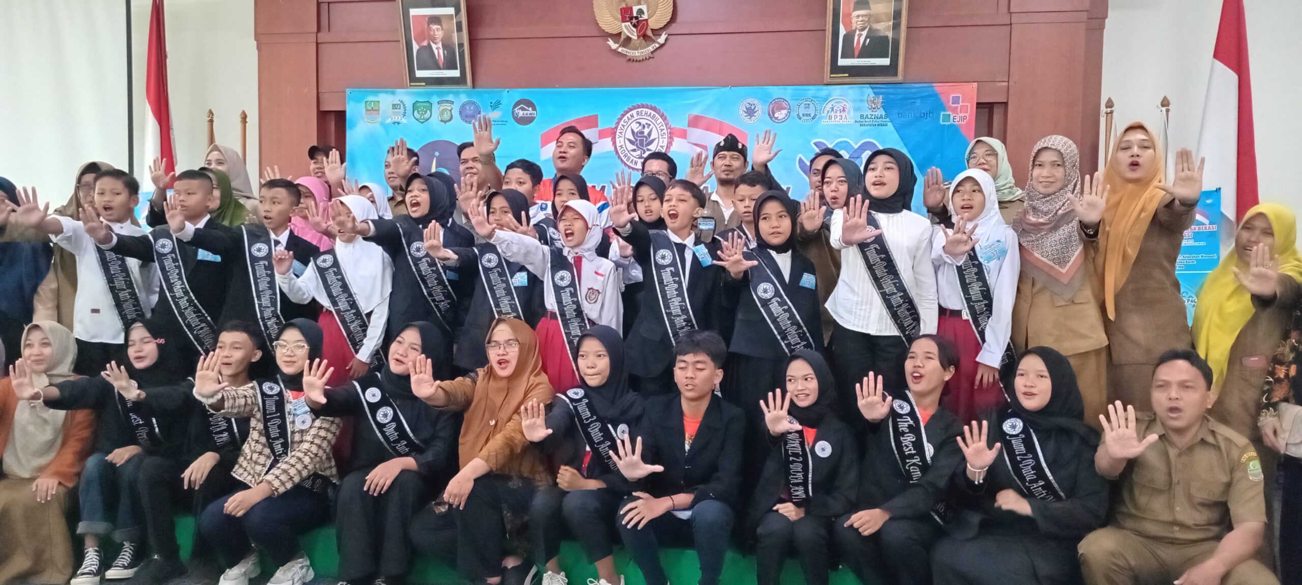 S Sekolah Dasar Kecamatan Cibitung yang selalu Aktif Supportnya dalam kegiatan ini,Para peserta Duta Anti Narkoba tetap semangat dalam menyerap ilmu Pembekalan nanti nya untuk bertading,dan Bank bjb Kabupaten Bekasi selalu mendukung dan mensupport kegiatan YR Kobra,Baznas kabupaten bekasi ,BNK kabupaten Bekasi dalam memberikan edukasi kepada masyarakat, khususnya remaja dan pelajar di Kabupaten Bekasi, terkait Pencegahan, Pemberantasan, Penyalahgunaan, dan Peredaran Gelap Narkoba (P4GN).