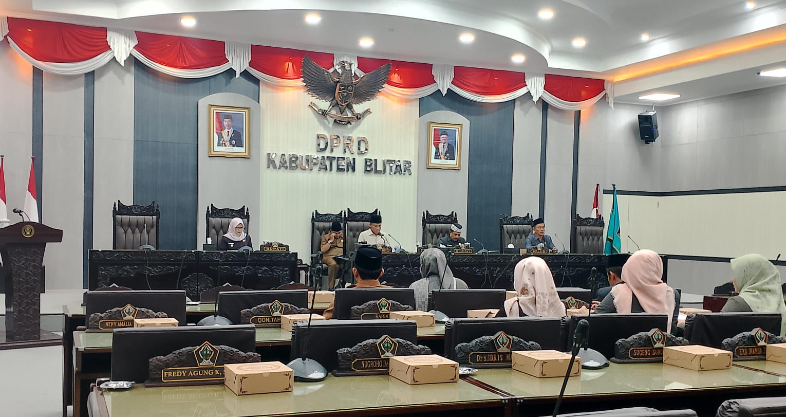 di Graha Paripurna DPRD Kabupaten Blitar, Senin (19/08/2024) itu dipimpin langsung Ketua DPRD Kabupaten Blitar Suwito didampingi Wakil Ketua Muhammad Rifa’i, Susi Narulita dan Mujib. Turut hadir pula Bupati Blitar Rini Syarifah, perwakilan jajaran Forkopimda, Sekda Kabupaten Blitar Izul Marom, sejumlah kepala OPD dan sejumlah anggota DPRD.