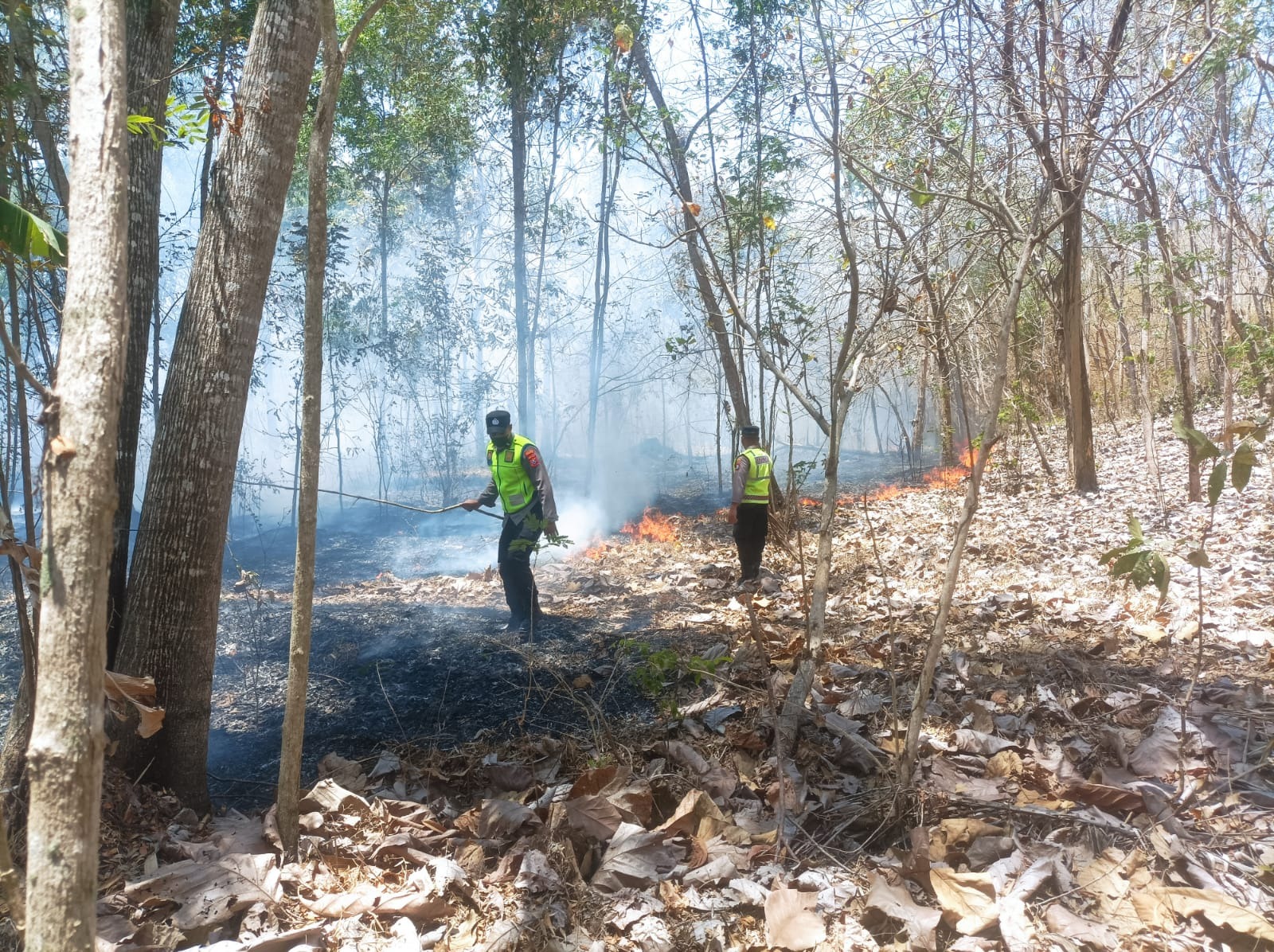 Berbagai metode pemadaman digunakan, seperti gepyok dan pembuatan sekat bakar untuk membatasi penyebaran api, serta penyemprotan air dari mobil pemadam kebakaran (Damkar). “Semua bekerja keras untuk memadamkan api, dan berkat kerja sama tim yang solid, api bisa dikendalikan dalam waktu sekitar dua jam,” tambahnya.