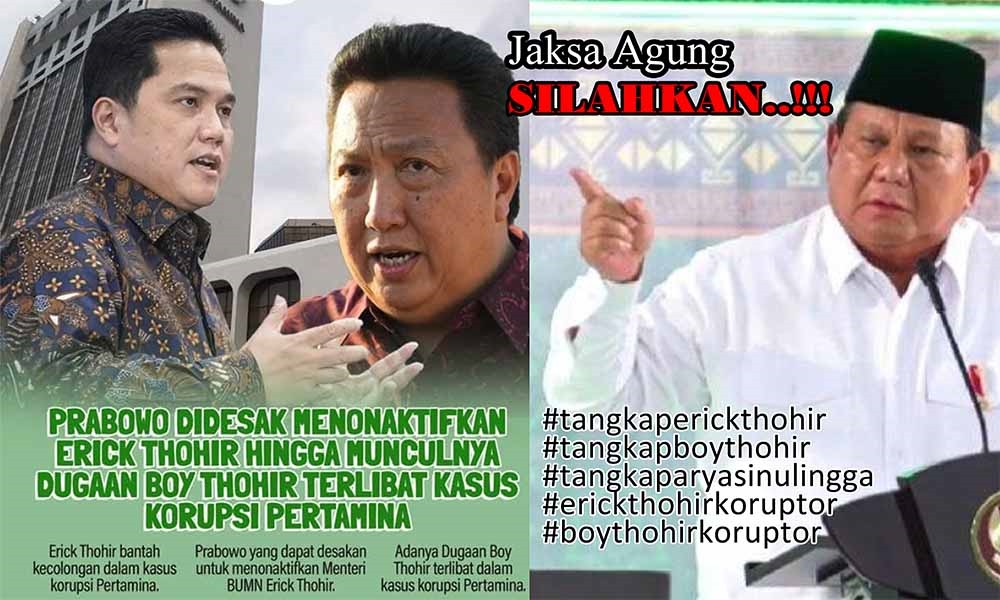 Publik Desak Presiden Prabowo Non-aktifkan Menteri BUMN Erick Thohir,Munculnya Nama Boy Thohir di Kasus Korupsi Pertamina