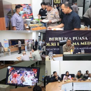 Kota Bekasi,dailyindonesia.co- Polres Metro Bekasi Kota menggelar kegiatan Berbuka Puasa Bersama Media sebagai bentuk silaturahmi dan memperkuat sinergitas dengan insan pers. Acara ini berlangsung di Ruang Zoom Meeting Lantai 3 Polres Metro Bekasi Kota, Kamis (13/3/2025), dan dilaksanakan serentak dengan Mabes Polri melalui zoom meeting.