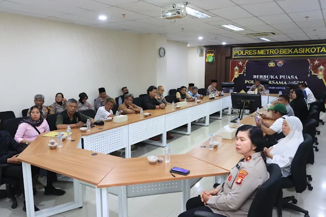 Acara buka puasa Polri bersama media, dihadiri Kapolres Metro Bekasi Kota Kombes Pol Dani Hamdani dan Pejabat Utama Polres Metro Bekasi Kota. Acara dihadiri juga oleh wartawan dari berbagai media cetak, elektronik dan online yang aktif bertugas di Polres Metro Bekasi Kota.