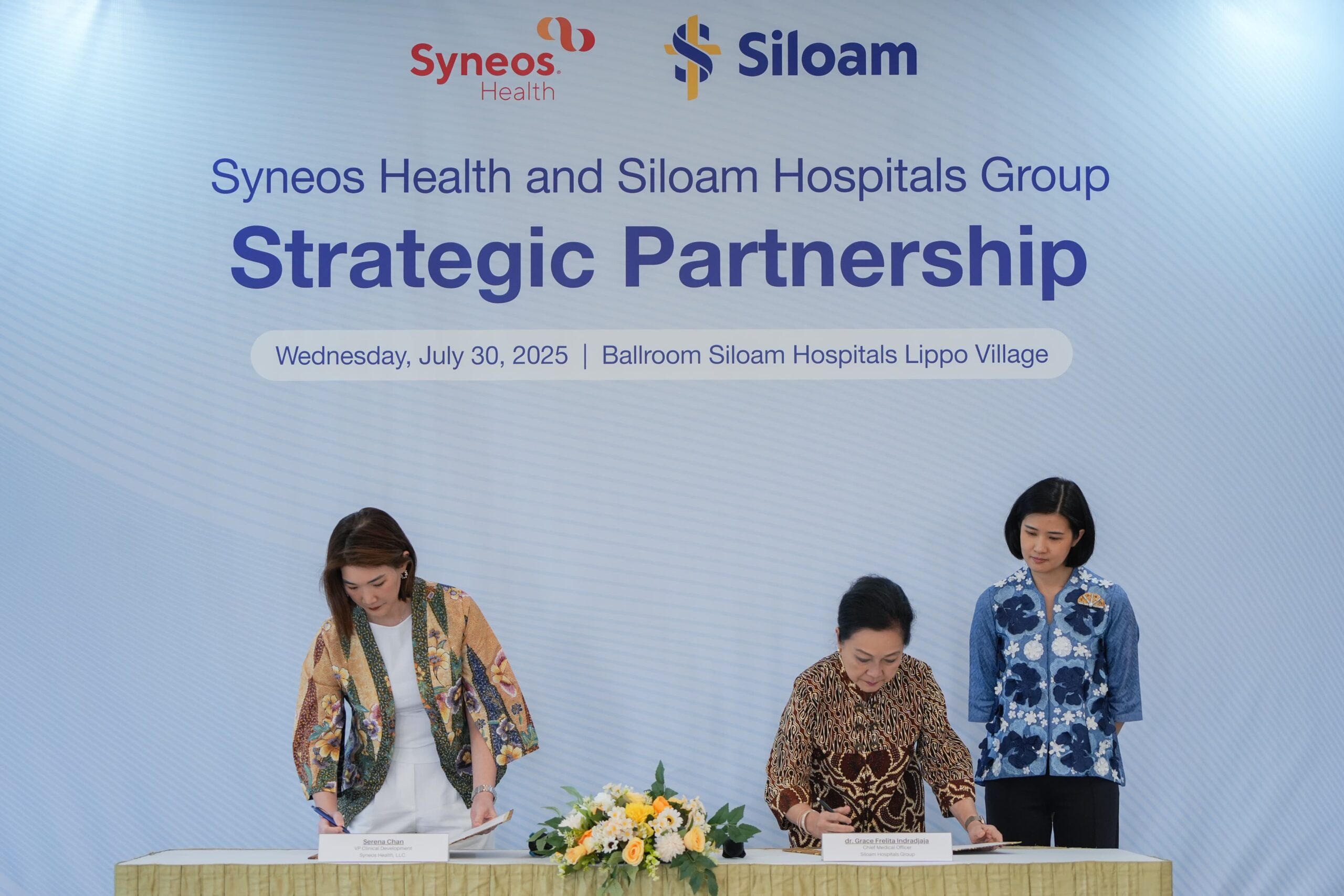 Penandatanganan ini dilakukan di Tangerang pada Rabu 30 Juli 2025 oleh masing-masing wakilnya, yaitu dr. Grace Frelita selaku Medical Managing Director Siloam Hospitals Group, dan Serena Chan selaku VP Clinical Development Syneos Health. Melalui kerja sama ini, pasien Siloam berpotensi mendapatkan akses lebih awal terhadap terapi dan metode pengobatan yang inovatif dan terbaru.