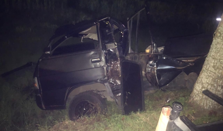 Mobil kemudian oleng ke kanan atau arah barat, menabrak pohon di tepi jalan, lalu terjun ke persawahan. Akibat kejadian tersebut, pengemudi dan tiga penumpangnya mengalami luka-luka.