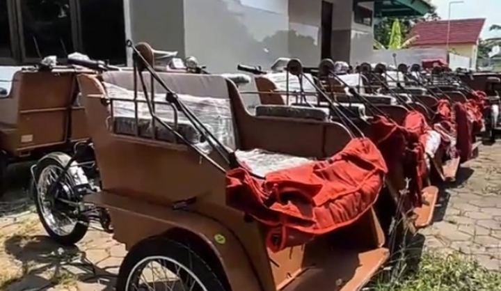 Banyuwangi|Bantuan 200 unit becak listrik dari Presiden Prabowo Subianto untuk para tukang becak telah tiba di Kabupaten Banyuwangi, Senin (12/1/2026).