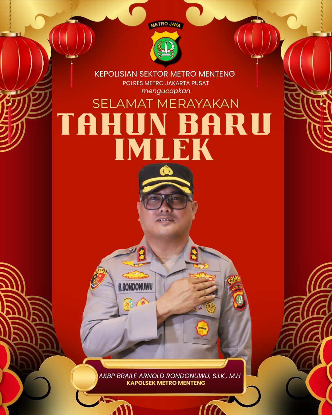 Kapolsek Metro Menteng, AKBP Braile Arnold Rondonuwu, S.I.K., M.H., menyampaikan pesan hangat agar momen Imlek tahun ini membawa kebahagiaan, kemakmuran, serta keberkahan bagi semua warga Menteng dan sekitarnya.
