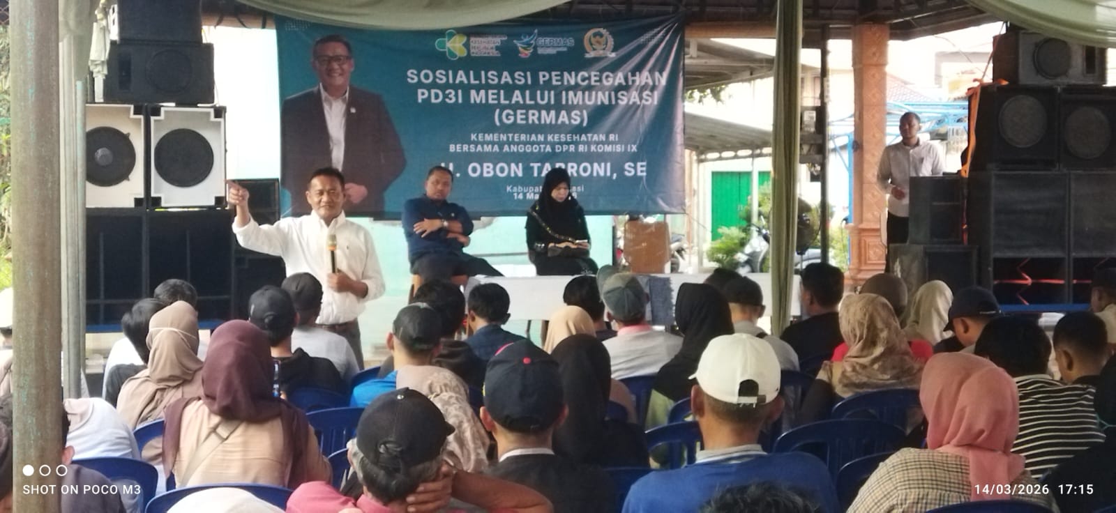 BEKASI, dailyindonesia.co – Kesehatan adalah aset berharga, dan hal ini terus digaungkan keras di Kabupaten Bekasi. Pada Sabtu (14/3/2026), Jl. Perum Telaga Harapan No.1 Blok I4, Telagamurni, Kecamatan Cikarang Barat, menjadi saksi semangat kolektif masyarakat dalam menjaga kesehatan. Kementerian Kesehatan RI bersama Anggota DPR RI Komisi IX, H. Obon Tabroni, S.E., menggelar sosialisasi Pencegahan Penyakit yang Dapat Dicegah Dengan Imunisasi (PD3I) dalam rangka Gerakan Masyarakat Hidup Sehat (GERMAS). Acara ini dihadiri penuh antusiasme oleh berbagai unsur masyarakat, tokoh daerah, tenaga kesehatan, hingga awak media.