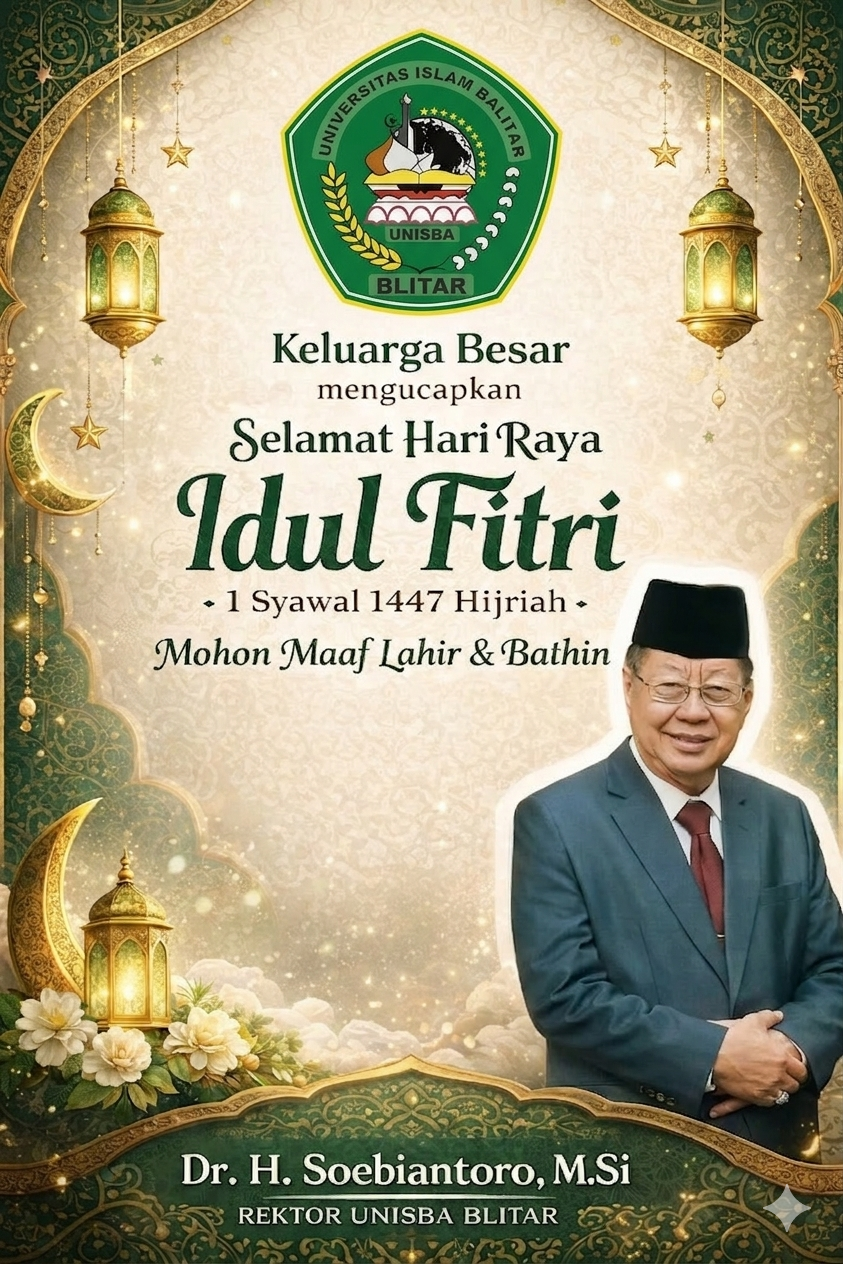 ”Setelah satu bulan penuh kita menjalankan ibadah puasa, kini tiba saatnya kita merayakan kemenangan dengan hati yang bersih. Atas nama pribadi dan keluarga besar UNISBA Blitar, saya mengucapkan Selamat Hari Raya Idul Fitri 1 Syawal 1447 Hijriah. Taqabbalallahu minna wa minkum, shiyamana wa shiyamakum,” tutur beliau.