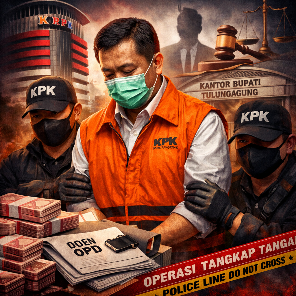 Bupati Tulungagung, Gatut Sunu Wibowo, resmi ditetapkan sebagai tersangka setelah diduga menjalankan pola pemerasan terstruktur terhadap jajaran pejabat di lingkungan pemerintah daerah.