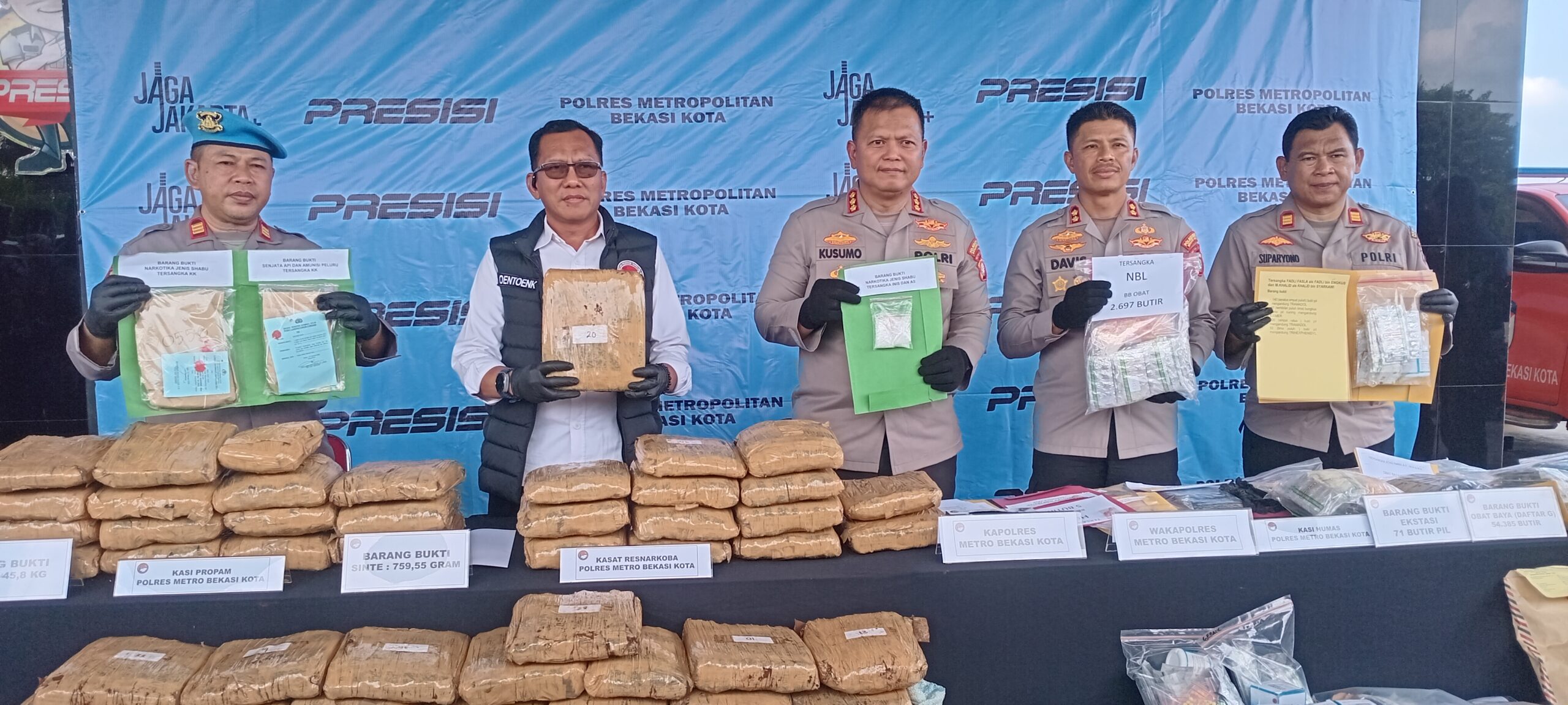 Kapolres Metro Bekasi Kota, Kombes Pol Kusumo Wahyu Bintoro, S.H., S.I.K., M.H., dalam penyampaiannya memaparkan bahwa dari jumlah kasus yang berhasil diselesaikan, terdapat 31 kasus yang berkaitan dengan peredaran narkotika, sedangkan sisanya sebanyak 49 kasus merupakan tindak pidana peredaran obat keras atau obat berbahaya yang tidak memiliki izin edar dan beredar di masyarakat.