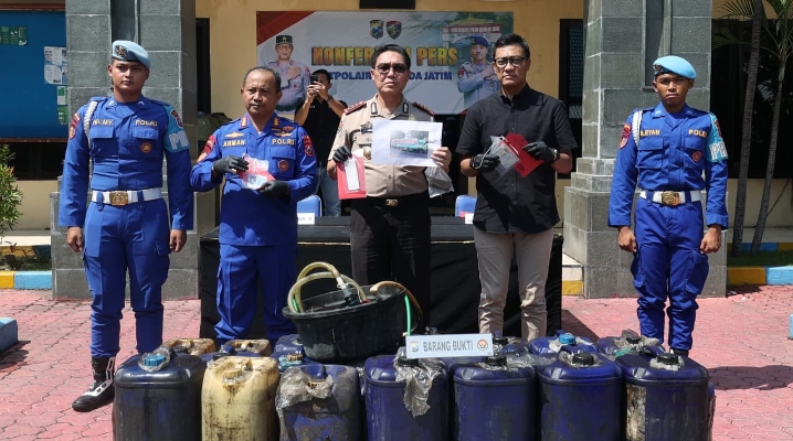 SURABAYA,– Direktorat Polisi Perairan dan Udara (Ditpolairud) Polda Jawa Timur mengungkap kasus penyalahgunaan pengangkutan bahan bakar minyak (BBM) bersubsidi jenis solar di kawasan Pelabuhan Tanjung Perak, Surabaya.