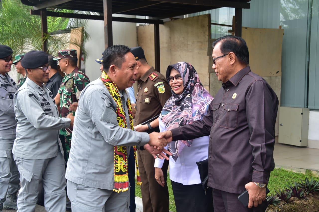Kedatangan Kepala Bakamla RI dijemput oleh Danguspurla Koarmada 2 Laksma TNI Amrin Rosihan Hendrotomo, S.E., dan Danlanal Kolonel Laut (P) Dr. Hendriman Putra di Bandara Internasional Sultan Aji Muhammad Sulaiman